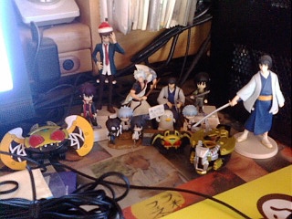 の周り。銀さん、桂さん、エリザベス、高杉、キョン、キバット、タツロット。
