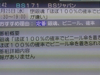 ↑アニ銀のオススメ理由。銀魂は良いんですけれどもねッ、『ビニール』とか『確率』ってどんなオススメ理由なんですか、我が家のTV